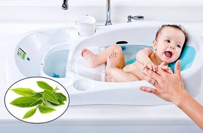 Tắm cho bé bằng lá chè tươi giúp làm dịu mát
