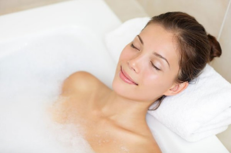 Ngâm mình trong nước ấm cũng là biện pháp giảm stress cho mẹ sau sinh. Giúp giảm đau cơ và thúc đẩy quá trình lưu thông máu. Từ đó giúp cải thiện tình trạng đau đầu, đau nhức xương khớp và mang lại cảm giác sảng khoái, dễ chịu. Mẹ bỉm sữa có thể ngâm mình trong nước ấm với các loại thảo dược như ngải cứu, trầu không, trà xanh… để giải tỏa căng thẳng.