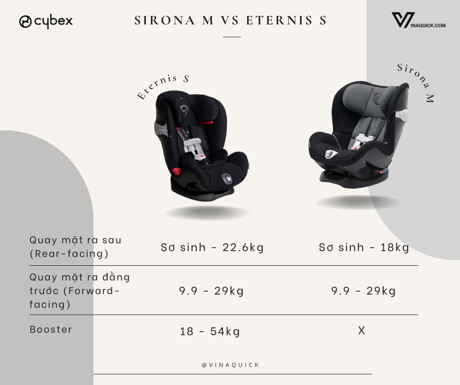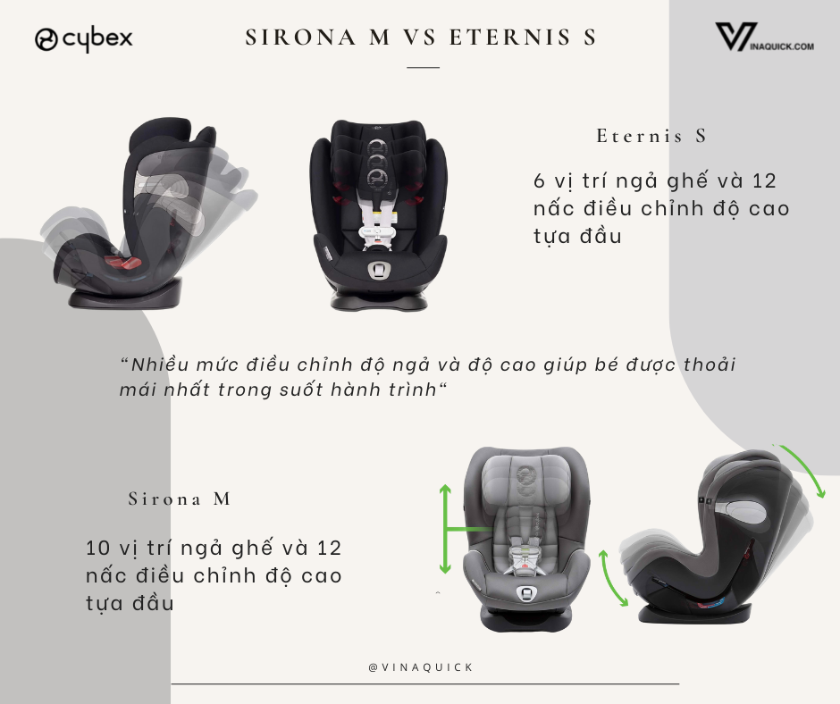 SO SÁNH 2 MẪU GHẾ NGỒI Ô TÔ ĐÌNH ĐÁM CỦA CYBEX LÀ ETERNIS S VÀ SIRONA M