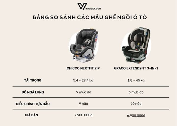 Bảng so sánh các mẫu ghế ngồi ô tô cho bé.