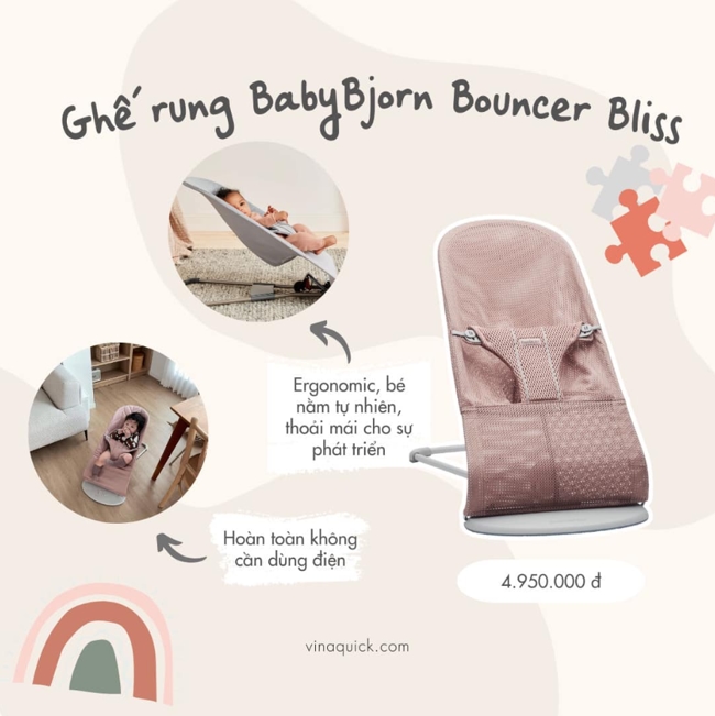 Ghế rung Babybjorn Bouncer Bliss là một sản phẩm của thương hiệu Baby Bjorn, một công ty Thụy Điển chuyên về các sản phẩm dành cho trẻ em. Ghế rung Babybjorn Bouncer Bliss có những đặc điểm nổi bật sau: