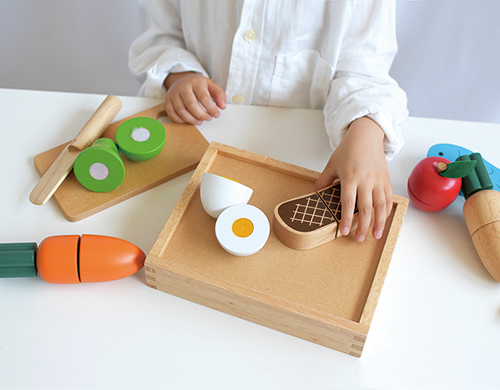 | Các chi tiết | Khay gỗ x1, Dao trái cây x1, Dao răng thưa x1 Thịt bò x1, Cá x1, Trứng x1, Bánh mì x1 Cà-rốt x1, Táo x1, Củ cải x1, Khoai tây x1, Lê x1 |