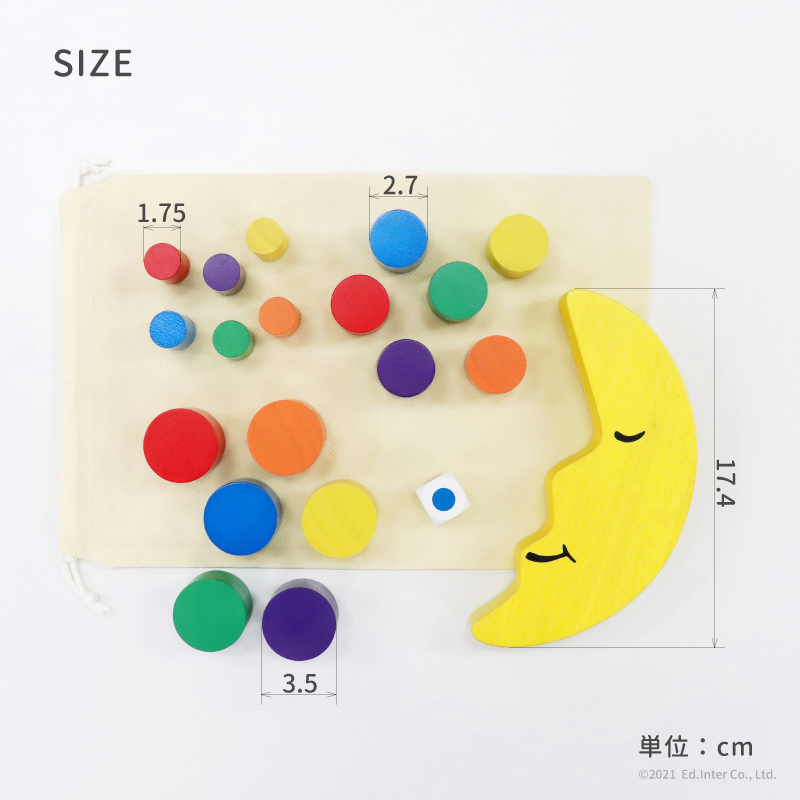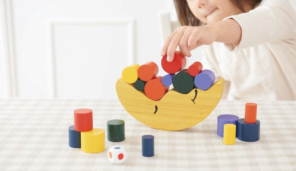 Màu sắc và kích thước các khối gỗ khác nhau sẽ đem lại cảm giác thú vị, thu hút sự tập trung của bé cố giữ cân bằng về mặt trăng.