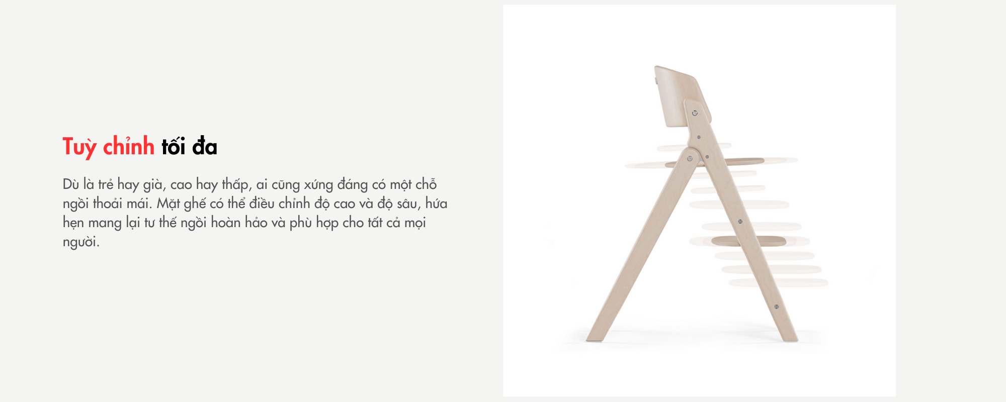 Một chiếc ghế cao có thể gấp gọn, được chế tác tinh xảo từ gỗ beech (gỗ dẻ gai Châu Âu) bền vững. Click & Fold dễ dàng cất trữ và điều chỉnh – là chiếc ghế lý tưởng cho người từ 3 đến 99 tuổi.
