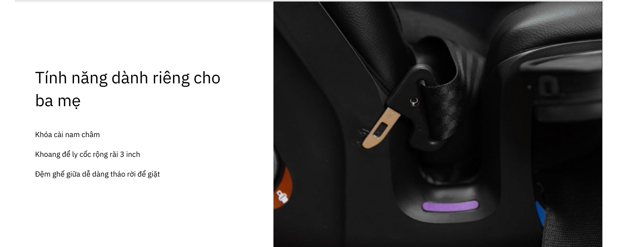 Chốt gắn LATCH dạng đẩy, kết nối ghế chắc chắn với điểm neo xe.