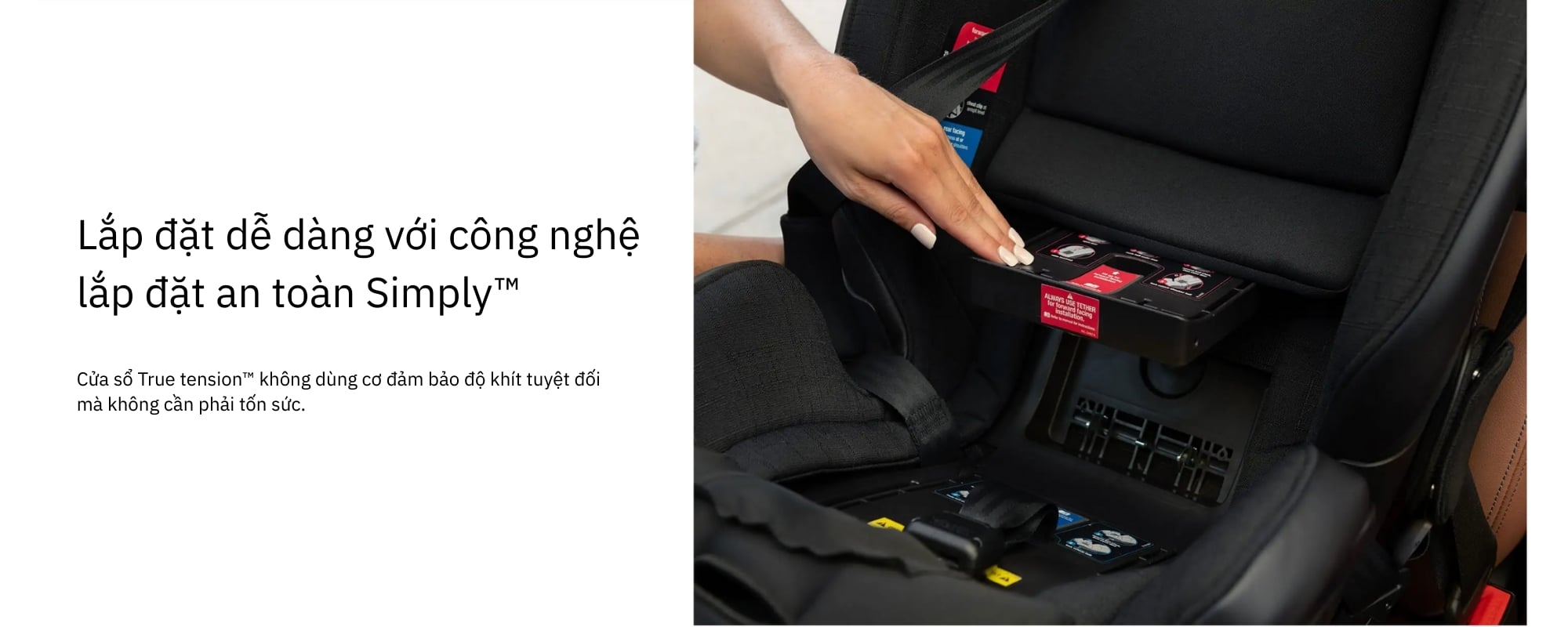 Cửa True tension™ không cần dùng lực, cố định ghế cực chắc chắn mà không tốn sức.