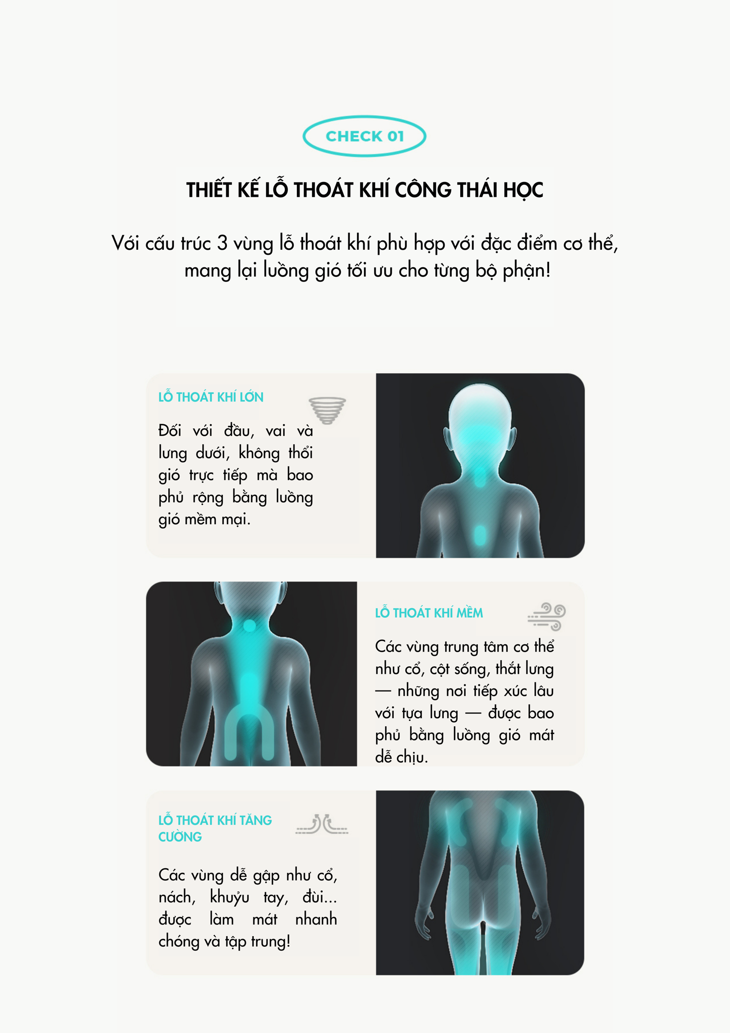 23 lỗ thoát khí phân bổ gió đều khắp cơ thể