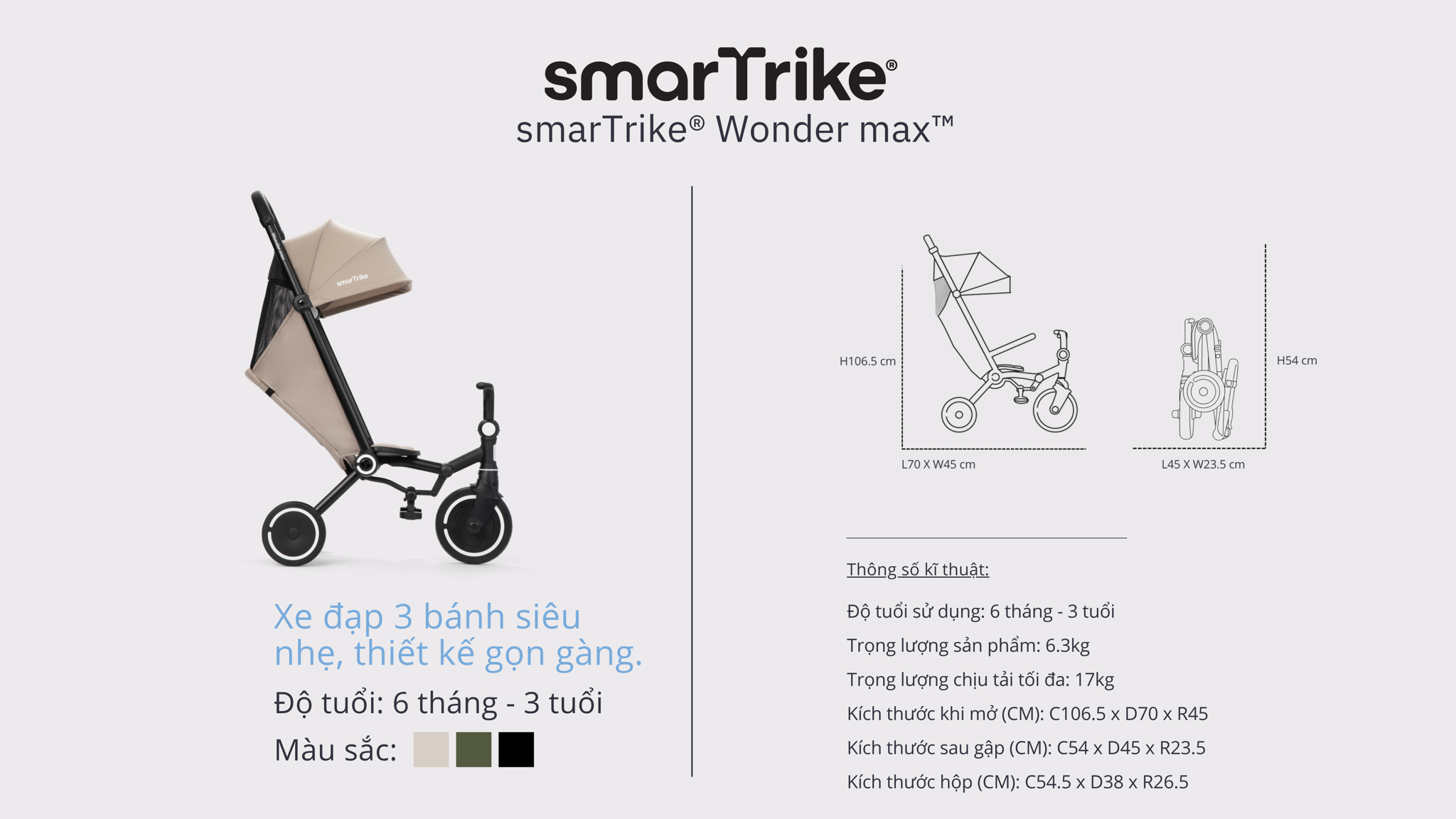 XE ĐẨY BA BÁNH SMARTRIKE WONDER MAX
