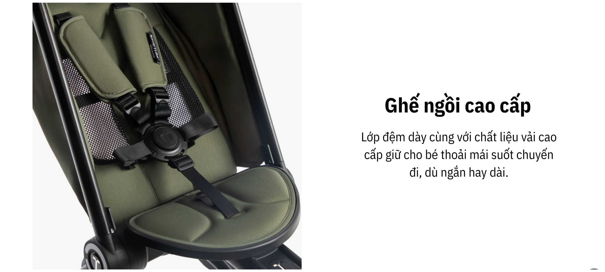 - Đạt chứng nhận tiêu chuẩn an toàn xe đẩy, trang bị mái che 3 giai đoạn và ghế ngồi siêu rộng, bảo vệ tối đa cho bé.